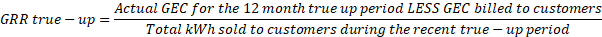 (b)   The Generation Recovery Rider (GRR) shall be calculated as follows and billed as a separate line item on customer bills. Projected generation equipment costs (GEC) are based on all known factors such as loan payments and other fixed charges: