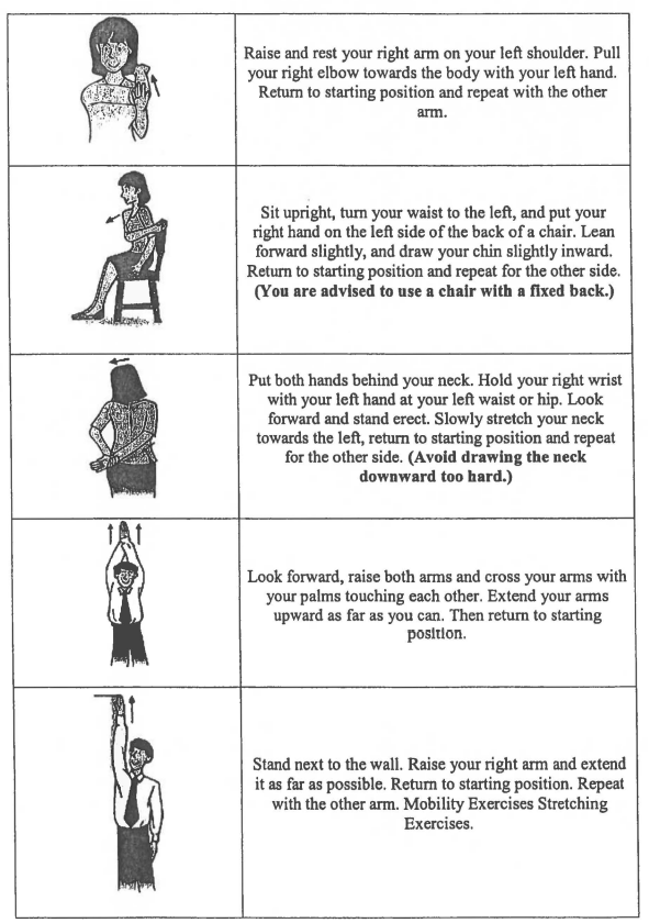 Because the City recognizes that it is essential to practice proper stretching techniques, the attached exercises are recommended for pre-work stretching.