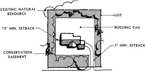 The site capacity calculations and net densities in Article 04 and Article 05 assume all of a residential lot will be disturbed during development. This Section provides the rules by which resource protection is permitted to occur on a lot. It is permitted only when the minimum lot size exceeds twenty thousand (20,000) square feet. All eligible lots shall place a conservation easement over the resource area in question, restricting the use of that land to open space uses and prohibiting the clearing, cutting, or disturbing of vegetation. All construction envelope developments shall follow this Section’s standards.