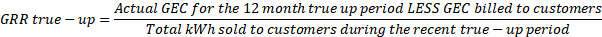 (b) The Generation Recovery Rider (GRR) shall be calculated as follows and billed as a separate line item on customer bills. Projected generation equipment costs (GEC) are based on all known factors such as loan payments and other fixed charges: